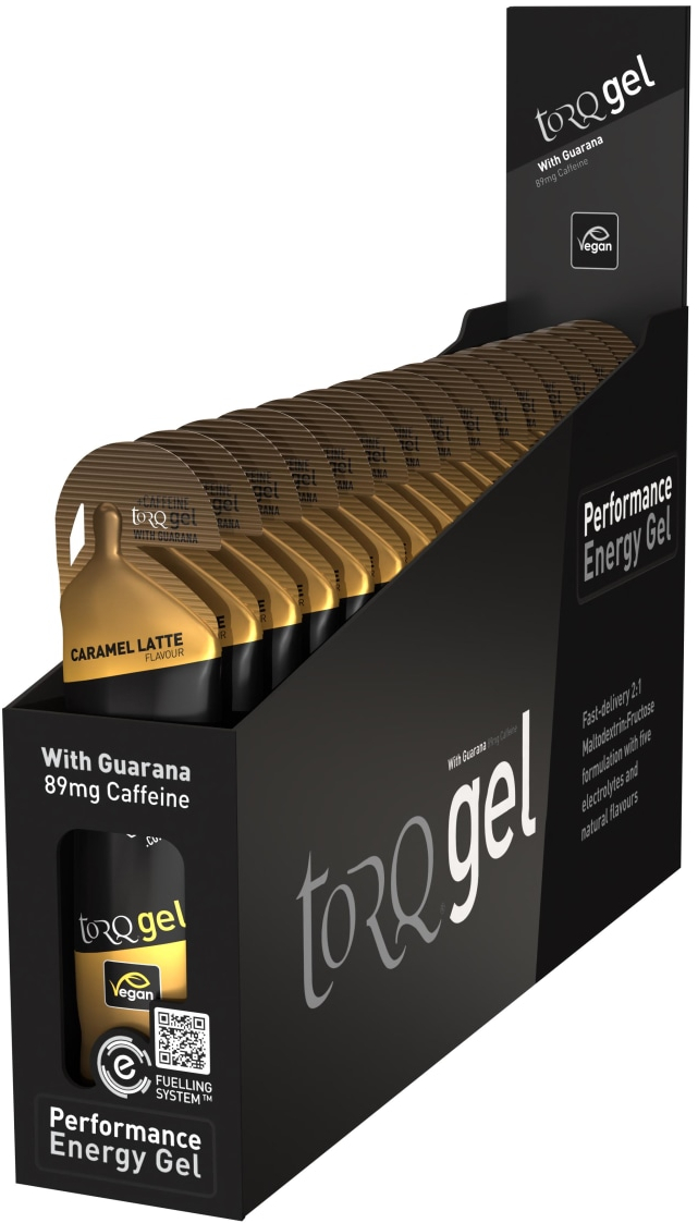 TORQ: Produced with 30g of fast-delivery 2:1 Maltodextrin: Fructose carbohydrate, with the 5 key electrolytes lost during exercise, with natural flavours.TORQ’s Energy gels have a silky-smooth consistency and are light on the stomach, for the fastest possible absorption.At 30g of carbohydrate per 41g serve, TORQ’s compactly packaged Energy gels really pack a punch and represent tremendous value compared to most other gels on the market.Caffeine consumption during exercise also helps in lubricating the central nervous system, to increase muscular power and efficiency as well as mobilising fat as a fuel source, helping to spare glycogen (your carbohydrate reserves).TORQ’s Gels form part of the TORQ Fuelling System, so can be used alongside TORQ’s energy drinks, bars and chews to fuel optimal performancesSuitable for vegans and containing no artificial sweeteners or colours.One TORQ gel = 1 TORQ Unit(See TORQ Fuelling System)